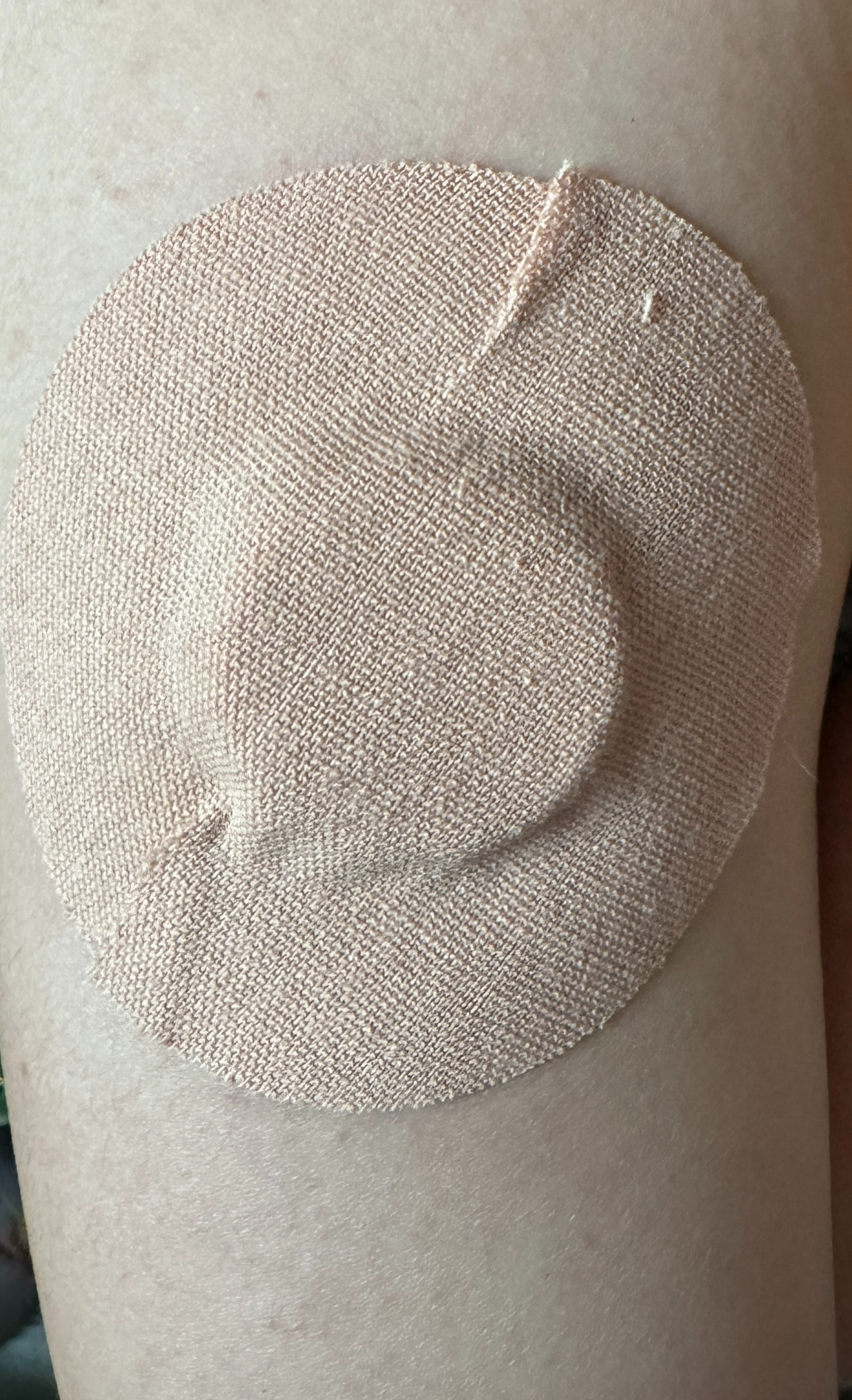 팔에 부착하고 고정 패치를 붙여주면 됩니다.